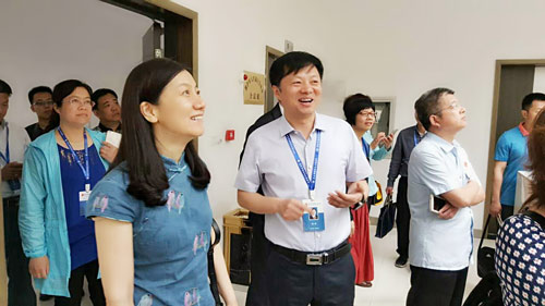 人民司法天平雜志主編李芹同30名作者一起參觀宿城法院文化建設時,聽取“男神”院長耿輝介紹情況。