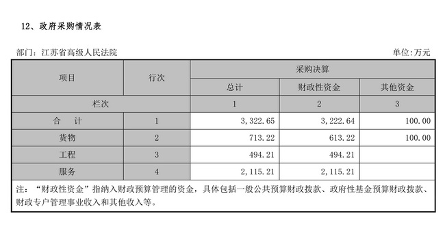 江蘇省高級人民法院本年收入合計(jì)32315.9萬元,其中:財(cái)政撥款收入30657.11萬元,占94.87%;其他收入1658.79萬元,占5.13%。