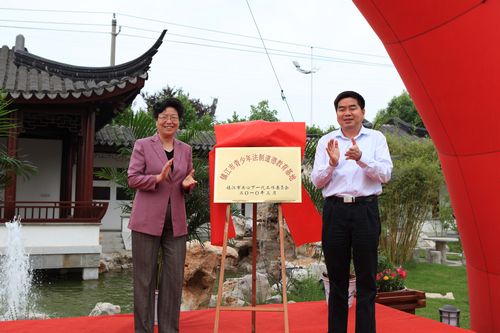儀式上,鎮江市委常委、組織部長魏紅軍和市中級法院院長帥巧芳共同為潤州法院的“鎮江市青少年法制道德教育基地”進行了揭牌。
