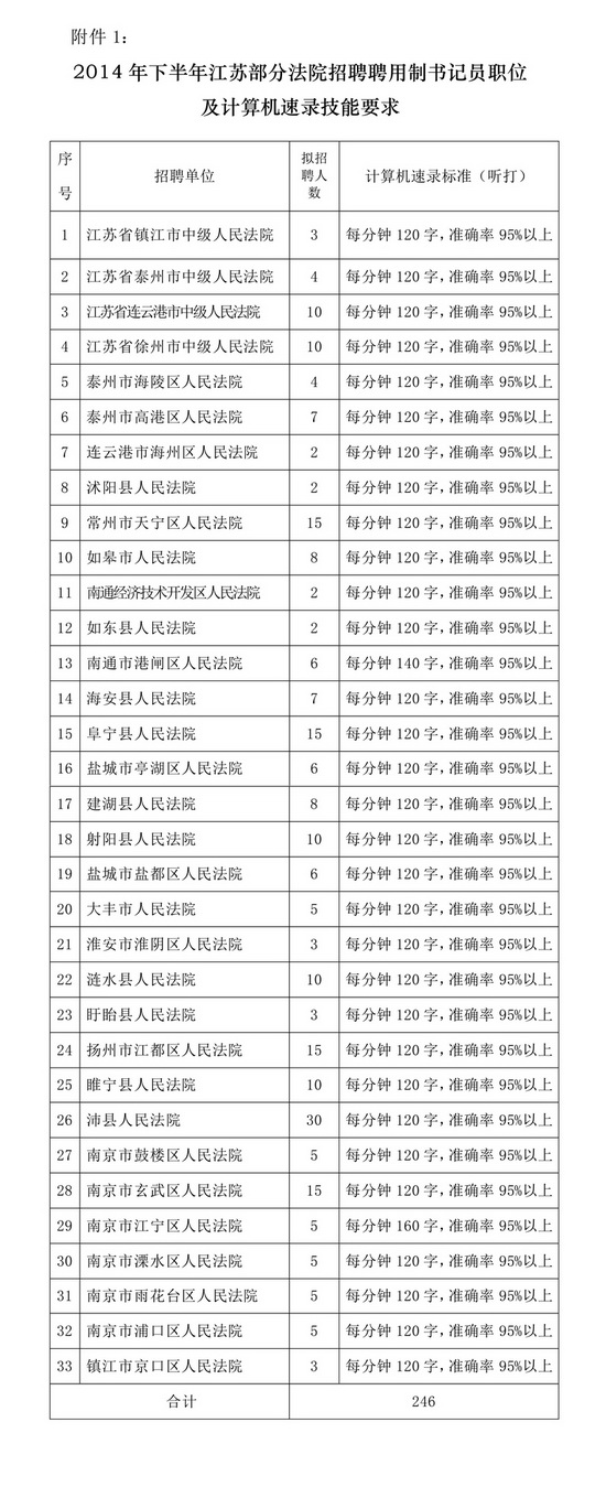 因審判工作需要,江蘇法院系統33家法院決定面向社會公開招聘聘用制書記員。現將有關事項公告如下: