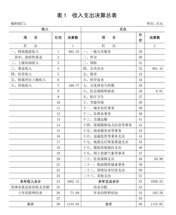 1.財政撥款收入 892.35 萬元,為當年從省級財政取得的公共預算財政撥款。