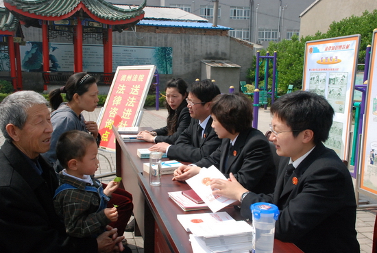 為了方便當事人訴訟,根據農村群眾的勞動生活特點,全市各基層法院均設立了“假日法庭”、“巡回法庭”和“預約法庭”,以最快的速度、最方便的形式解決各類糾紛,并積極開展送法進村、指導調解、法制宣講、矛盾排查、和諧創建、結對幫扶等活動。