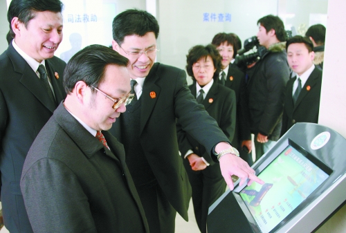公丕祥為訴訟服務中心揭牌,訴訟服務中心建設是江蘇法院的一項重點工作。