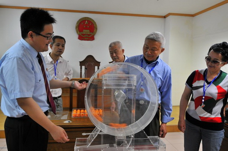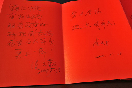 5月13日上午,在鎮江市中級法院舉辦的開放日活動中,年紀最大的參觀者呂延松已經81歲了,老人家說,1949年剛解放時他曾經到過一次法院,那時還是地區行政公署時期。六十多年后的今天,他通過自愿報名參加法院的開放日活動,走進法院了解法院,揭開法院神秘的面紗,既高興也了卻了一個心愿。呂老平時喜歡讀書看報,對法制類題材更是感興趣。當老人家坐上審判臺敲響法槌時,旁觀者都不由地為他老人家鼓掌。