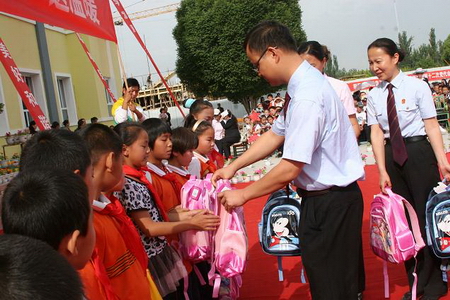 5月30日,江蘇省鎮江市中級人民法院的援疆干部、掛職于新疆生產建設兵團伊寧墾區人民法院的副院長謝毅海,帶著鎮江中院的委托,親手將一個個裝滿學習用品的新書包送到新疆生產建設兵團農四師70團子弟學校孩子們的手中,為孩子們送去“六一”節的特別禮物。