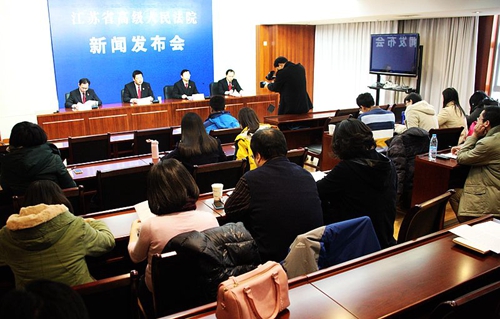 江蘇省高級人民法院黨組副書記、副院長周繼業,審判管理辦公室劉坤主任、研究室王成出席了新聞發布會。周繼業副院長向大家通報相關情況,劉坤主任現場回答了媒體記者的提問。
