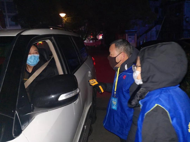 逢人必查。對進入封閉管控區(qū)域的人員進行信息登記,并測量體溫。