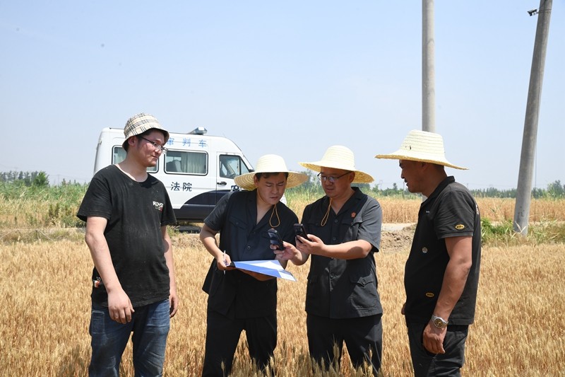 麥?zhǔn)諘r(shí)節(jié),江蘇省沛縣法院大屯法庭為盡快化解一起土地承包經(jīng)營(yíng)糾紛案件,法官李魁組織雙方當(dāng)事人對(duì)涉案土地進(jìn)行現(xiàn)場(chǎng)丈量和數(shù)據(jù)確認(rèn),為330余畝土地“量體裁案”。