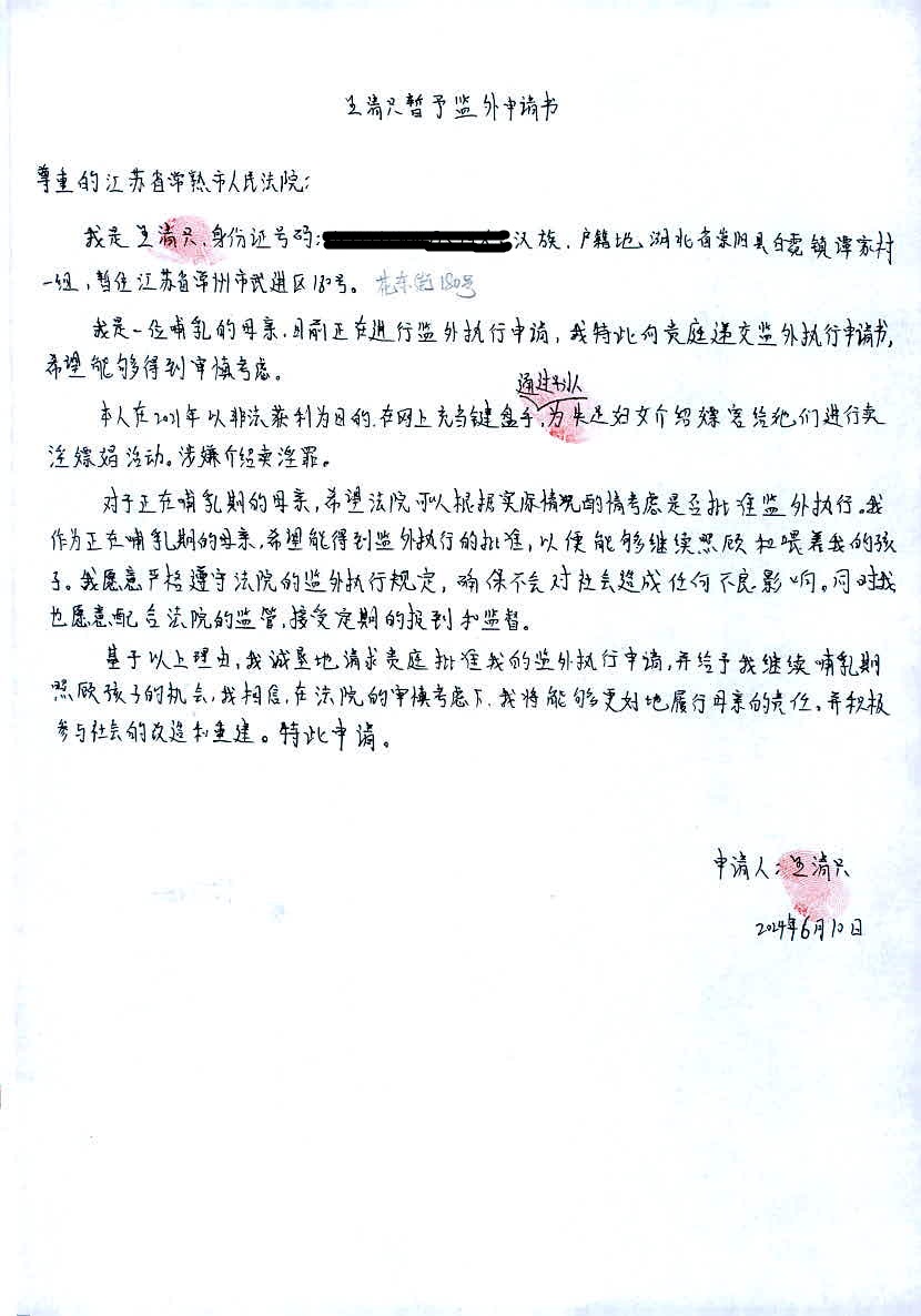 罪犯王清只,女,1990年2月7日生,漢族,初中文化,無業(yè),戶籍地湖北省崇陽縣白霓鎮(zhèn)譚家村一組,暫住江蘇省常州市武進區(qū)花東街180號。罪犯王清只因犯介紹賣淫罪,于2024年6月7日被我院判處有期徒刑五年三個月,并處罰金人民幣二十萬元。案件生效后,罪犯王清只以正在哺乳期為由向本院申請暫予監(jiān)外執(zhí)行,本院已立案受理,現(xiàn)將基本情況予以公示,出生證明等詳見附件。如有意見反饋,請于公示之日起三日內(nèi)向我院提出。