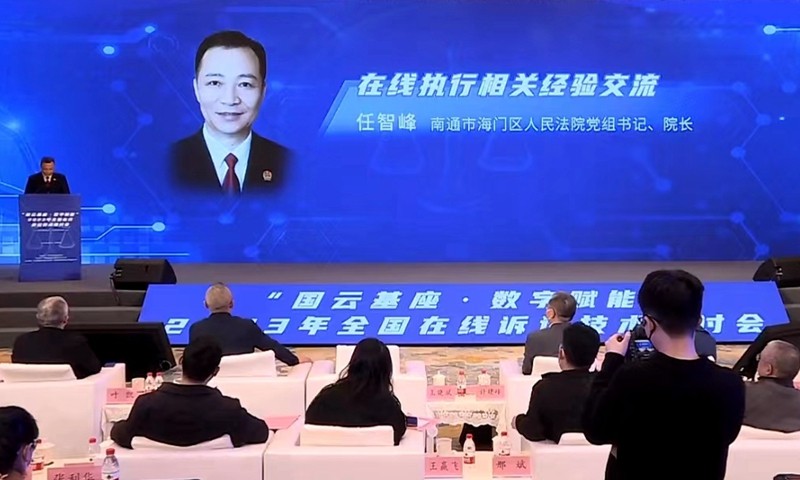 海門法院院長在“國云基座·數(shù)字賦能”全國在線訴訟技術(shù)研討會上發(fā)言